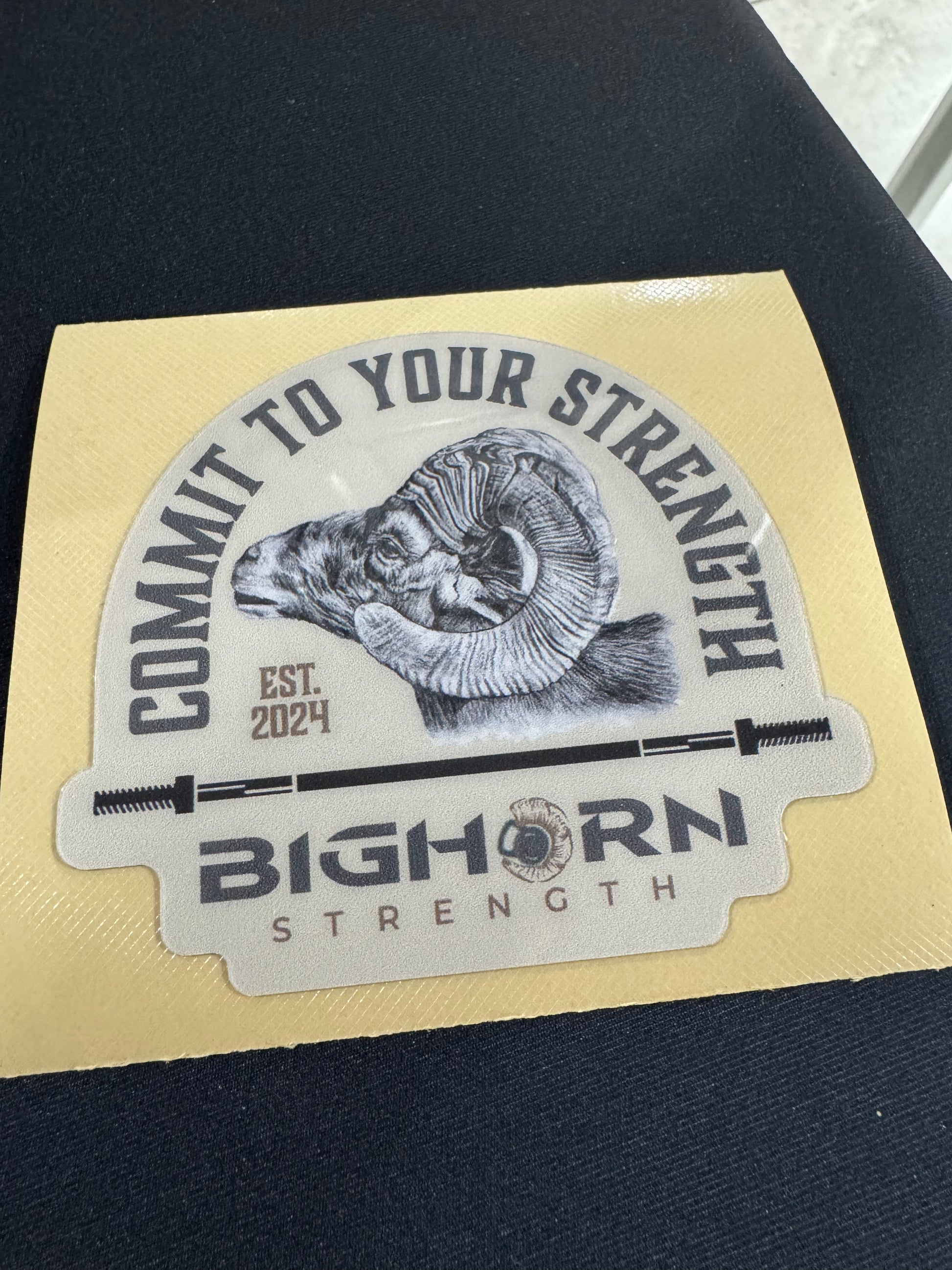 A large 4" x 4" heavy duty decal with our Commit to Your Strength logo featuring a handdrawn desert bighorn ram by Nevada local artist Derek Stevenson.